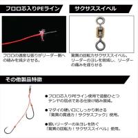 絡み激減!!フロロ芯入りPEライン。親針も孫針も貫通力抜群のサクサス仕様。フロロ芯入りPEライン使用。張りがある複合ラインの為、フォール・キャスト時のリーダー絡みが激減。状況に応じて選べる4種類のリグをラインナップ。リーダーのダメージを大幅減少させる驚異の回転力サクサススイベル付き。