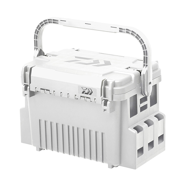 ハンドルストッパー搭載!持ち運び時にバランスが崩れず持ち運びラクラク。タックルボックスとしての収納性はもちろん、堅牢性を備えた座れるタックルボックス。使い勝手のよい両開きタイプのフタで、開けた時フタが90度で止まる。プライヤーなどの小物をチョイ置き出来るインナートレー内蔵。本体サイドにはロッドスタンドTBなどに対応した多目的ホルダーを装備しスタイルの合わせて機能を拡張可能。滑り止めシール付き。