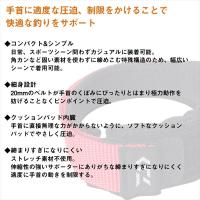 手首の使いすぎによるトラブルでお悩みの方へ。手首に適度な圧迫、制限をかけることで快適な釣りをサポート日常、スポーツシーン問わずカジュアルに装着可能。角カンなど固い素材を使わずに締めこむ特殊構造のため、幅広いシーンで着用可能。20mmのベルトが手首のくぼみにぴったりとはまり極力動作を妨げることなくピンポイントで圧迫。手首に直接無理な力がかからないように、ソフトなクッションパッドでやさしく圧迫。