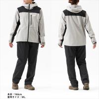 実釣に必要な基本機能を備えたリーズナブルレインスーツ。裏地にメッシュを配した二重構造とすることで、肌離れがよく、雨を肌で感じにくくなり、肌寒い時にも快適に着用可能。表地はマットな風合いで柔らかく、普段着として羽織る際にも便利。胸ポケットには止水ファスナーを搭載し、収納物の濡れを軽減する。二重袖口仕様で、袖口からの水の浸入を軽減。パンツファスナー裏には三角マチを搭載し、着座時のフロントファスナーからの浸水を最小限に抑える。