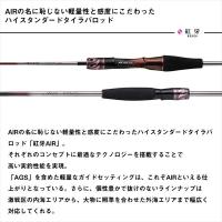 AIRの名に恥じない軽量性と感度にこだわったハイスタンダードタイラバロッド。それぞれのコンセプトに最適なテクノロジーを搭載することで高い実釣性能を実現。「AGS」を含めた軽量なガイドセッティングは、これぞAIRといえる仕上がりとなっている。さらに、個性豊かで抜けのないラインナップは激戦区の内海エリアから、大物に照準を合わせた外海エリアまで幅広く対応してくれる。■N64HB-SMT(フィールドやシチュエーションを選ばない「SMT」乗せ調子)細身・軽量チューブラーブランクと、感度としなやかさを備えた超弾性チタン合金「SMT」の融合によりシリーズ随一の感度を誇るSMT乗せモデル。幅広い水深やタイラバウエイトに対応し、フィールドやシチュエーションを選ばない高い汎用性を誇る。