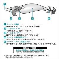 ドロッパーにも革命を!オモリグにも最適なエギタイプドロッパー。ドロッパー革命!イカメタルのドロッパーで使ってもオモリグ用のエギで使ってもよく釣れるジョイントエギの提案です。今まで反応しにくかったイカが反応しやすい縦ジョイントエギ。ドルフィンアクションでイカを狂わせる。ヒット後にローリングして逃げようとするマイカの動きにジョイント部が追従するのでばれにくい。フォールスピードは2タイプを設定。●ノーマルタイプは4.75秒/mで幅広いシチュエーションに対応可能。●スーパースローシンキングタイプは8.0秒/mでオモリグで威力を発揮します。カラーは実績カラーを厳選した7色。