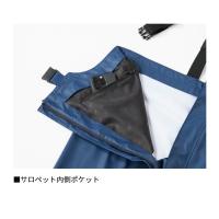 夏の船釣りをより快適にするサロペット。海水や汚れが染み込まず、お手入れも簡単で船釣りに最適なPU素材を全面に採用。安心感のあるチェストハイのサロペット。パンツのウエスト両脇にサイズ調整用タブを装備し、ウエストのフィット感を素早く調整可能。フロントファスナーの三角マチにより、水の浸入を軽減。ずり下がり防止のサスペンダー付き。パンツ内側に収納ポケットを搭載。