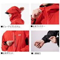 実釣に必要な基本機能を備えたベーシックモデル。裏地にメッシュを配した二重構造とすることで、肌離れがよく、雨を肌で感じにくくなり、肌寒い時にも快適に着用可能。表地はマットな風合いで柔らかく、普段着として羽織る際にも便利。胸ポケットには止水ファスナーを搭載し、収納物の濡れを軽減する。二重袖口仕様で、袖口からの水の浸入を軽減。上下別売りモデルで自分のサイズに合わせての購入や、買い替え時などに便利。