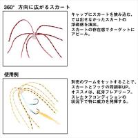 360°方向に広がるスカート。浮遊感+視覚アピール(スカートがふわりと踊る)。平田テスター監修。スカートの浮遊感と別売のワームをセットすることでタフコンディションで威力を発揮する。●βキャップ 本体に直接スカートが通った新キャップセット。従来のセッティング方法(キャップにスカートを挟み込む)では出せなかった、スカートの浮遊感を演出。●βシステム 独自形状の金属リングとシリコンキャップにより、挟むだけでネクタイやスカートを留めることが可能。揺れる船上でも容易に交換が可能。●カスタムの幅を拡げる自由なセッティング。別売の紅牙接続パーツβリング、紅牙替えフックβSS、紅牙シリコンネクタイ、紅牙フレアリーフをはじめとするワームをセットすることで、カスタムの幅はさらに拡がる。状況に合わせた自由な組み合わせにより、タイラバゲームの戦略の幅を拡げる。