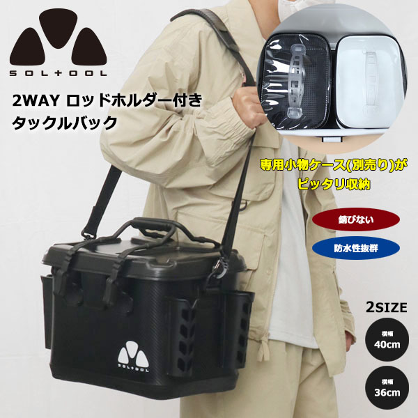 ハンドル×ショルダータイプ 40cm ブラック ※実物と色が違って見える場合があります。あらかじめご了承下さい。 ・防水性抜群、小物も置けるトレー型ハード素材の上部かぶせフタ。・サビに強いステンレスフレーム内臓。・握りやすく便利な合体ハンドル。専用小物ケース(別売り)がピッタリ収納できる!・脱着簡単、ショルダーベルト(実用新案パーツ)。・ロッドホルダー4ヶ所装備しています。※掲載している商品の画像は代表画像を表示している場合があります。また実際と色が違って見える場合があります。あらかじめご了承ください。