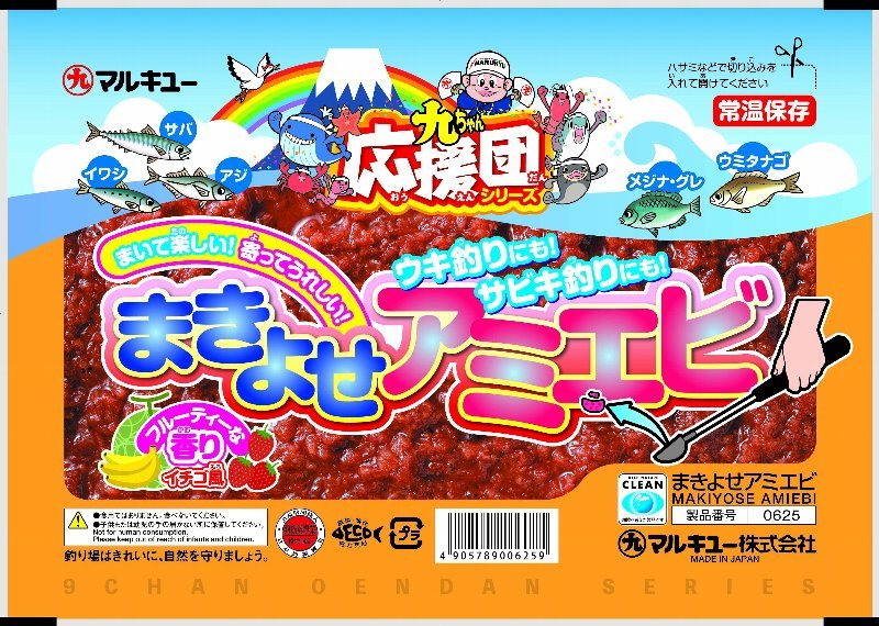 粒のしっかりしたアミエビを使用。より魚を足止めできます。まとまりがあり、同時に水面近くでの拡散性もあります。甘い香りをつけており、使用後の嫌な臭いが軽減。