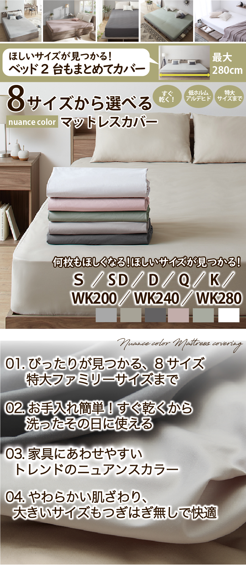 ボックスシーツ ベッドシーツ マットレスカバー おしゃれ シングル S SD D Q K WK200 WK240 WK280グレー グレージュ マットレスシーツ ベッドカバー シングル