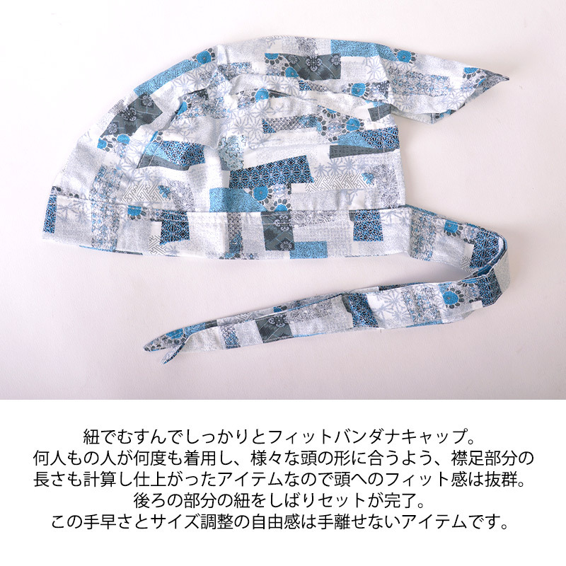 バンダナキャップ バンダナ帽子 三角巾 おしゃれ 大人 レディース メンズ 医療用帽子 綿100% 春 夏 秋 冬 | コットン バンダナキャップ (21-A)