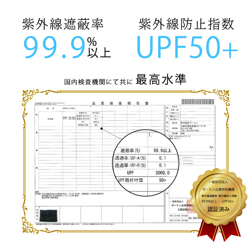 UVカット加工 最大遮蔽率 99.9%・紫外線防止指数 UPF50+(検査済)