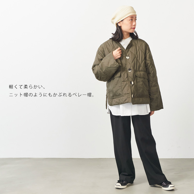 ニット素材のベレー帽。
