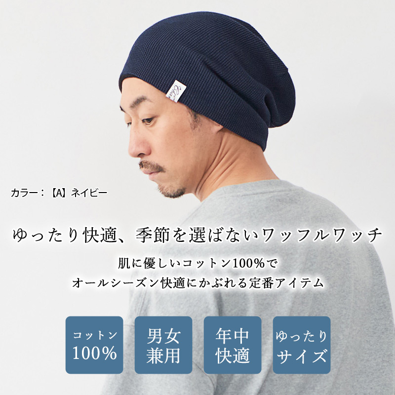 ニット帽 ニットキャップ 医療用帽子 おしゃれ 帽子 ビーニー メンズ レディース 大きいサイズ 綿 秋冬 冬用 |LARGE ワッフル×ストレッチ ビック ワッチ