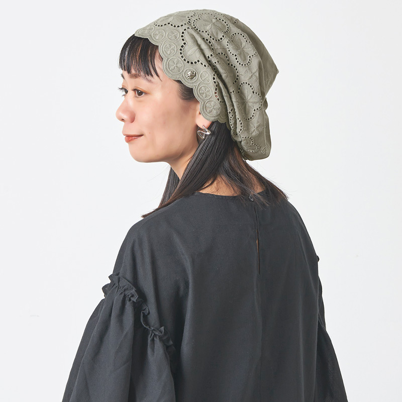 ゆったりシルエットが気になる襟足をカバーしてくれ、後頭部にはゴムが入っているのでフィットしてかぶれます。