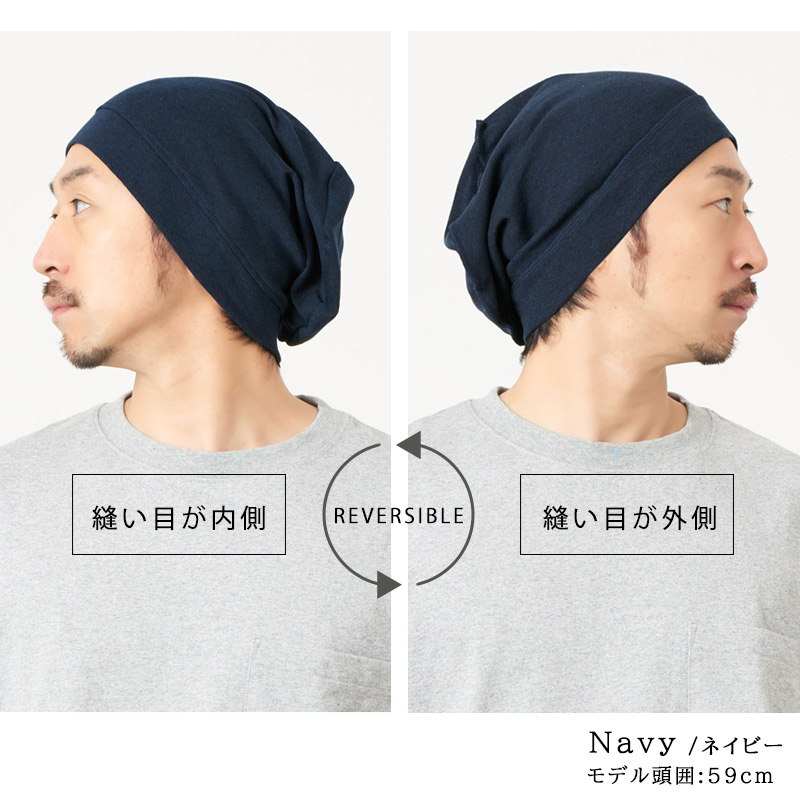 被り口を2回折り返し、ぴったり被れば就寝用帽子としても被れます