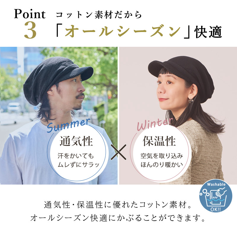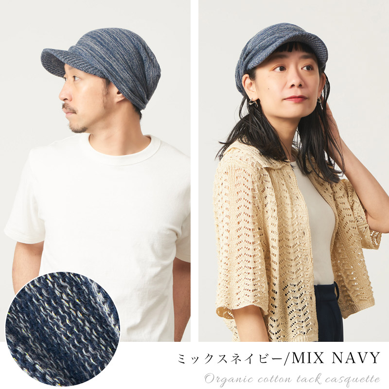ニット素材のオーガニックコットンの糸を使用したキャスケット
