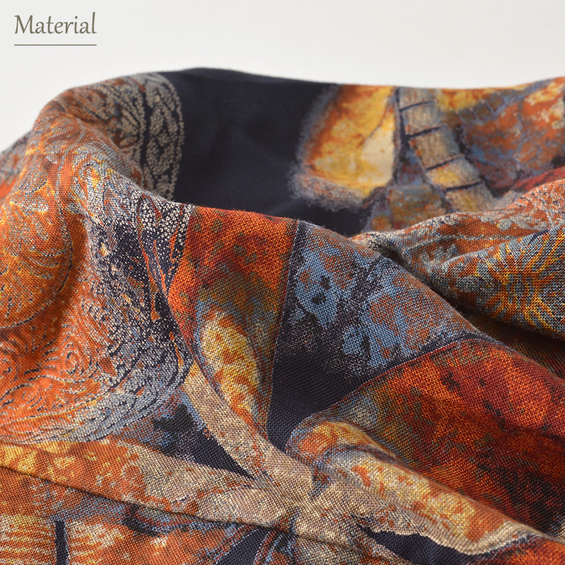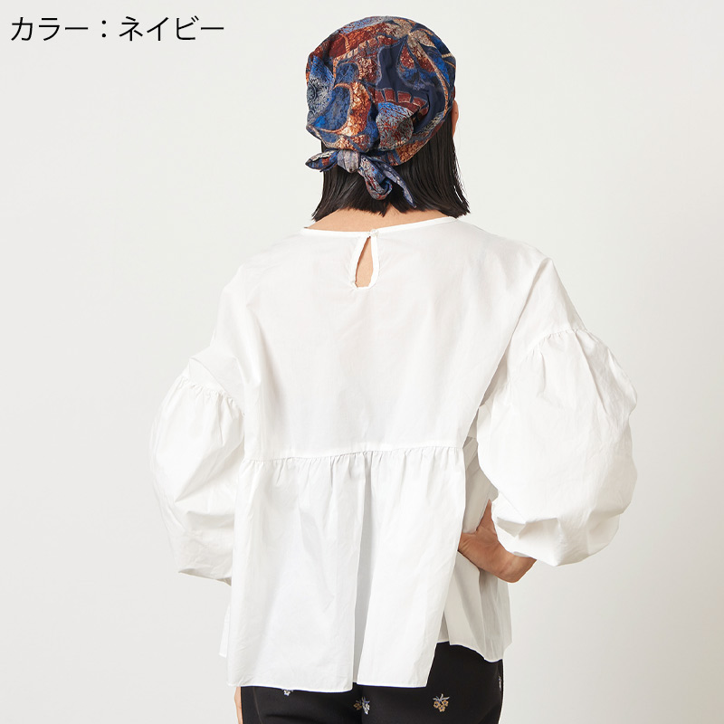 レーヨン独特のシャーリング感・ドレープ感が綺麗なシルエットを演出、かぶった時の形が決まります。