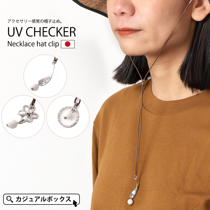 レディース 帽子クリップ おしゃれ 帽子 帽子用 あご紐 あご紐付き 帽子止め 帽子留め | UVチェッカー ネックレス ハットクリップ