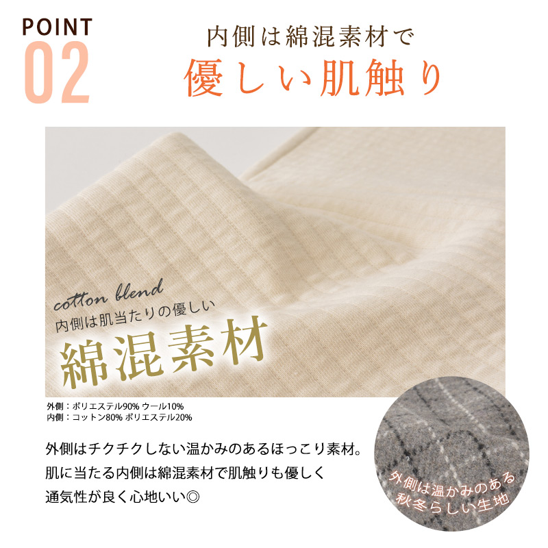 ●素材:表:ポリエステル90% ウール10% 裏:コットン(綿)80% ポリエステル20%