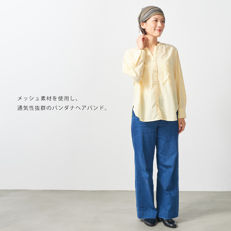 メッシュ素材を使用し、通気性抜群のバンダナヘアバンド。