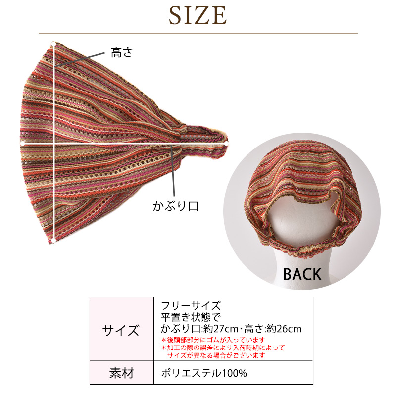 *後頭部部分にゴムが入っています。