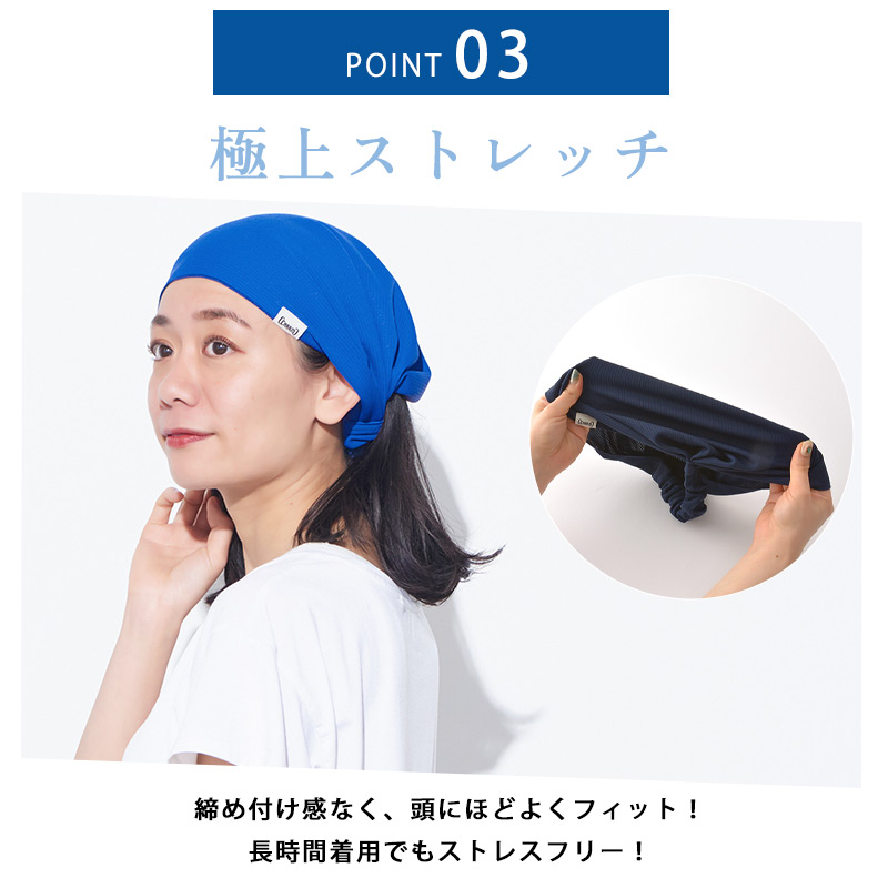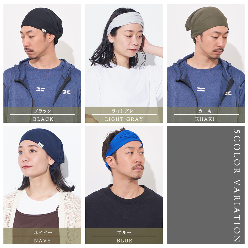 吸湿・放湿・吸汗・速乾・UVカット・接触冷感機能を用いたバンダナヘアバンド。