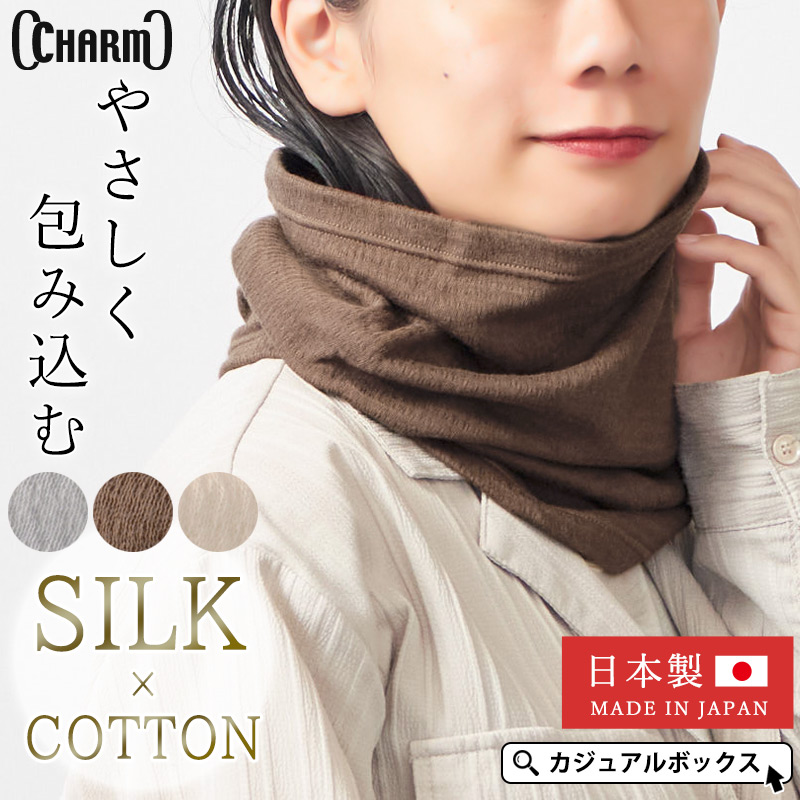 【2025年秋冬新作】 ネックカバー スヌード 首元 レディース メンズ 秋冬用 薄手 綿 絹 | 日本製 CHARM シルク コットン ロング ターバン ネックウォーマー