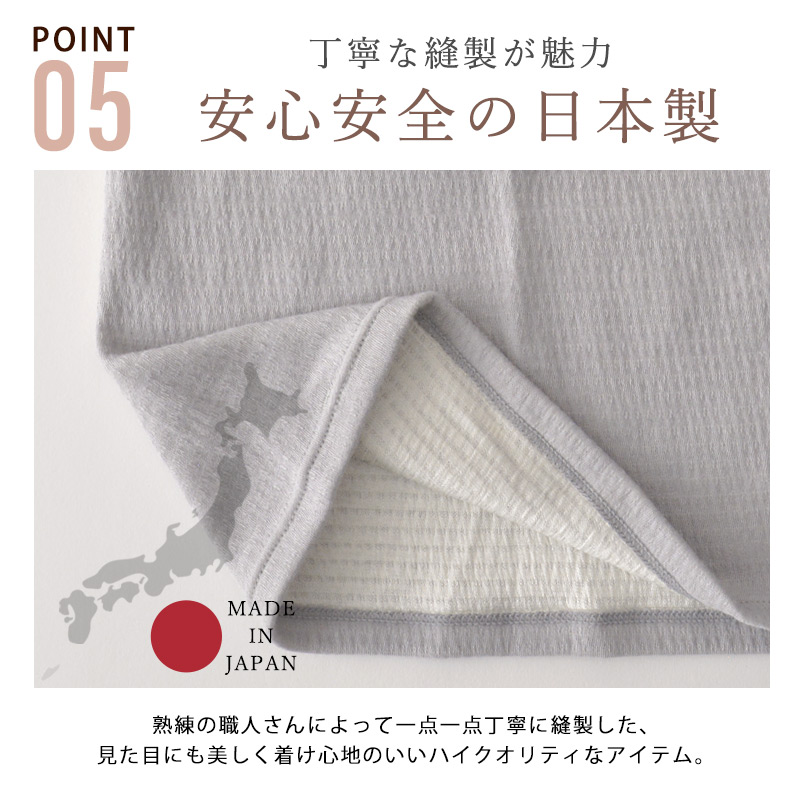 ナイロンとポリウレタンを加える事でほどよい伸縮性と耐久性を備え、保温性・通気性にも優れています。