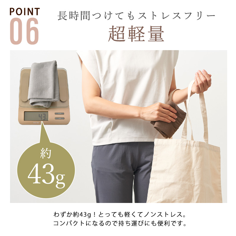 チクチクせず締め付け感がないので、外出時の紫外線対策はもちろん室内や就寝時にも快適。