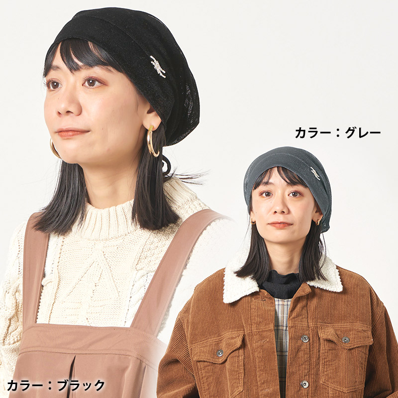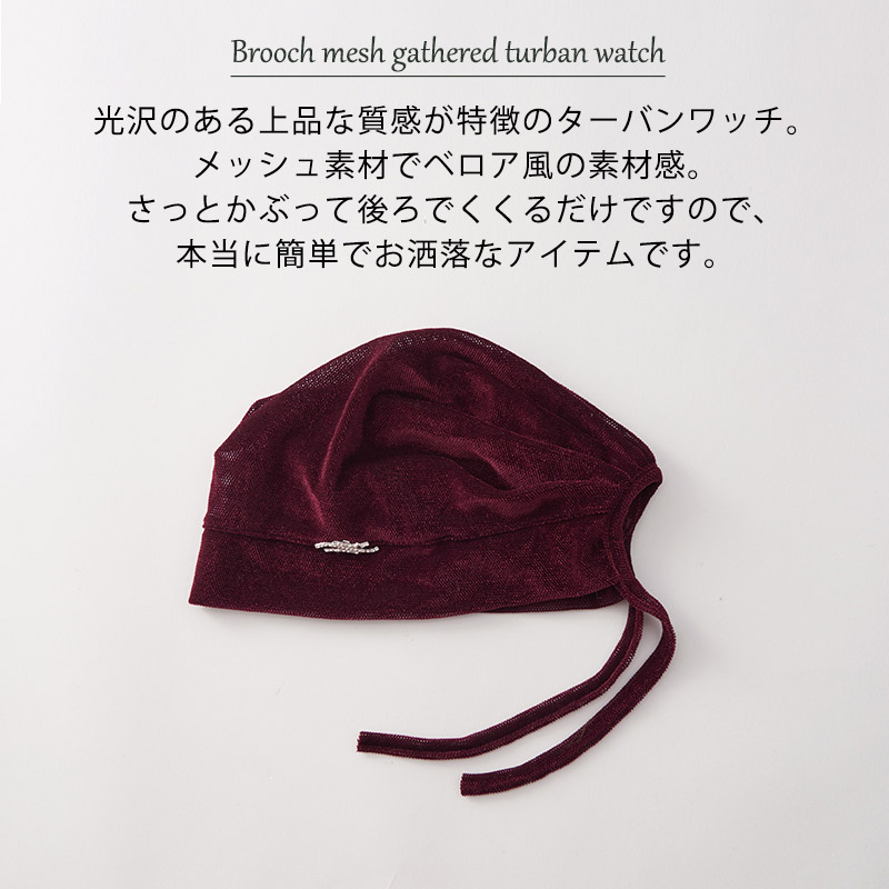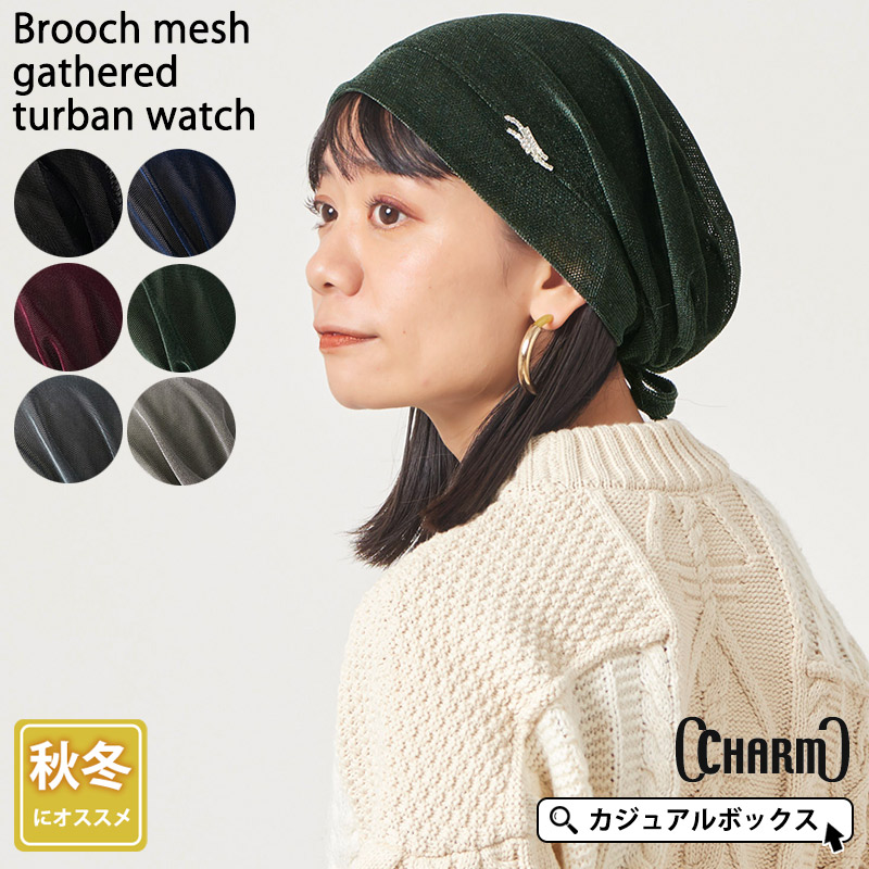 バンダナキャップ バンダナ風帽子 バンダナ帽子 レディース | CHARM ブローチ メッシュ ギャザー ターバンワッチ