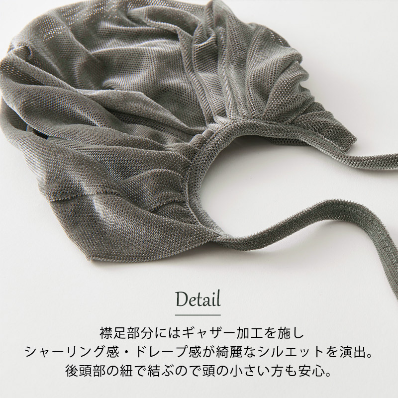 襟足部分にはギャザー加工を施しシャーリング感・ドレープ感が綺麗なシルエットを演出、かぶった時の形が決まります!