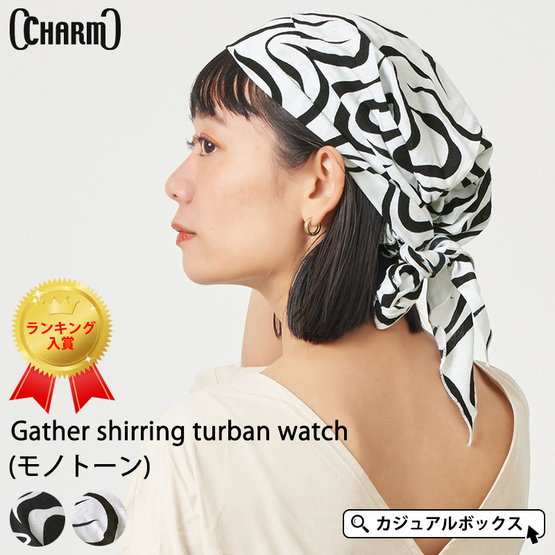 バンダナ帽子 バンダナキャップ 帽子 ターバンキャップ メンズ レディース 春夏 | ギャザー シャーリング ターバンワッチ (モノトーン)