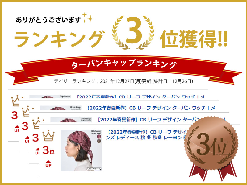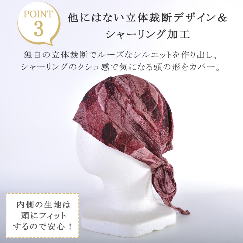 バンダナキャップ バンダナ帽子 ターバンキャップ 三角巾 レディース メンズ おしゃれ 医療用帽子 ケア帽子 春 夏 秋 冬 | CB リーフデザイン ターバン ワッチ