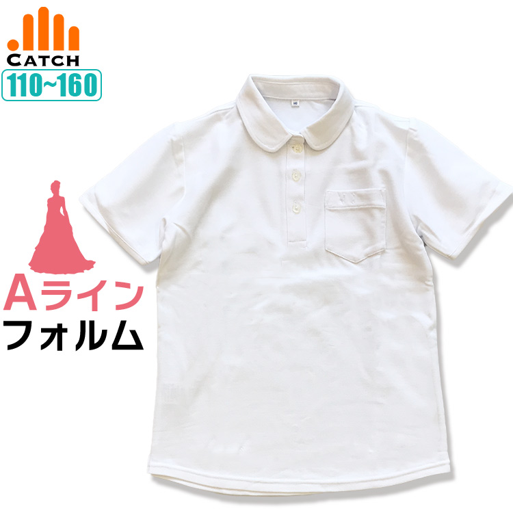 丸襟ポロシャツ 半袖 女の子 しっかり生地 パフスリーブ 女子 女児 キッズ 白 ホワイト スクール 園児 幼児 子供 小学生 制服 学校 かわいい 送料無料