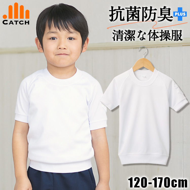 体操服 半袖 丸首 男女兼用 白 防汚加工 小学校 吸汗速乾 抗菌防臭 半袖 体操着 子供 スクール 小学生 送料無料