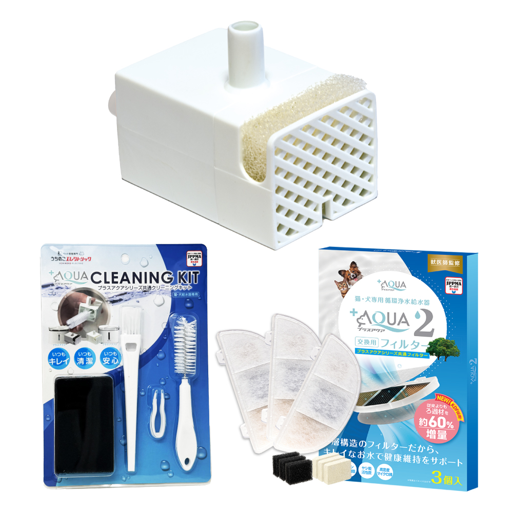約27%OFF プラスアクア2専用お手入れ3点セット フィルター+ポンプ+クリーニングキット 猫 犬 自動給水器 ペット 水飲み 軟水 お手入れ簡単