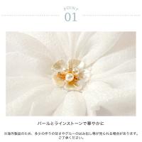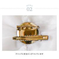 | 商品紹介 | ふんわりとしたチュールに、中央のフラワーモチーフがポイントの帯飾り。 小さなラインストーンが上品なアクセントになり、清楚で可憐なホワイトカラーが和装によく映えます。 軽やかなチュール素材で、動くたびにふんわりと揺れるのも可憐な印象に。 お着物や袴、浴衣に合わせれば一気に華やかな印象に。 裏側にクリップがついているのでヘアアクセサリーとしてもお使いいただけます。 ▲パールとラインストーンで華やかに。 ▲クリップと安全ピンがついています。 |
