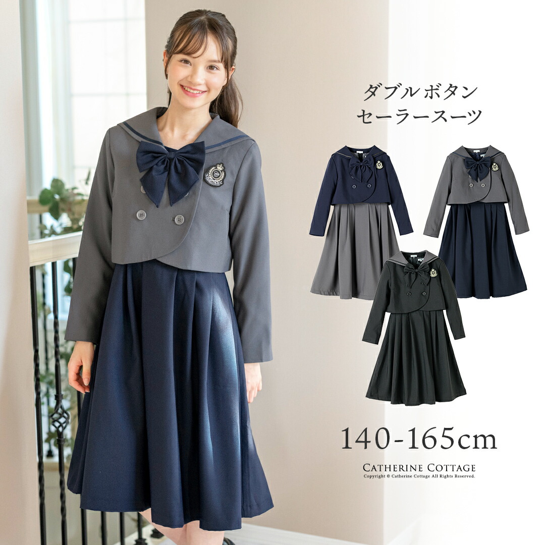 | 商品紹介 | 上品清楚なイメージをまとうなら! ありそうでなかったクラシカルセットアップ シンプルな美シルエットのワンピースにショート丈ジャケットを合わせた女の子卒業スーツです。 ダブルボタンのセーラーカラージャケットが、卒服定番のワンピーススタイルを上品クラシカルなお嬢様ムードへとシフト。 シルエット自慢のワンピースは、卒業式後は、カーディガンを羽織ってフォーマルに、ブラウスをインしてジャンスカスタイルなどさまざまなシーンできれいめコーデが楽しめます。 POINT - ショート丈ジャケットでスタイルアップ効果も抜群! - ダブルボタンにセーラーカラーで上品クラシカルなムードを漂わせて - 後ろファスナーでシンプルに着られかつ美シルエットなワンピースは、その後の着回しも自在 | ||||||||||||||||||||||||||||||||||||||||||||||||||