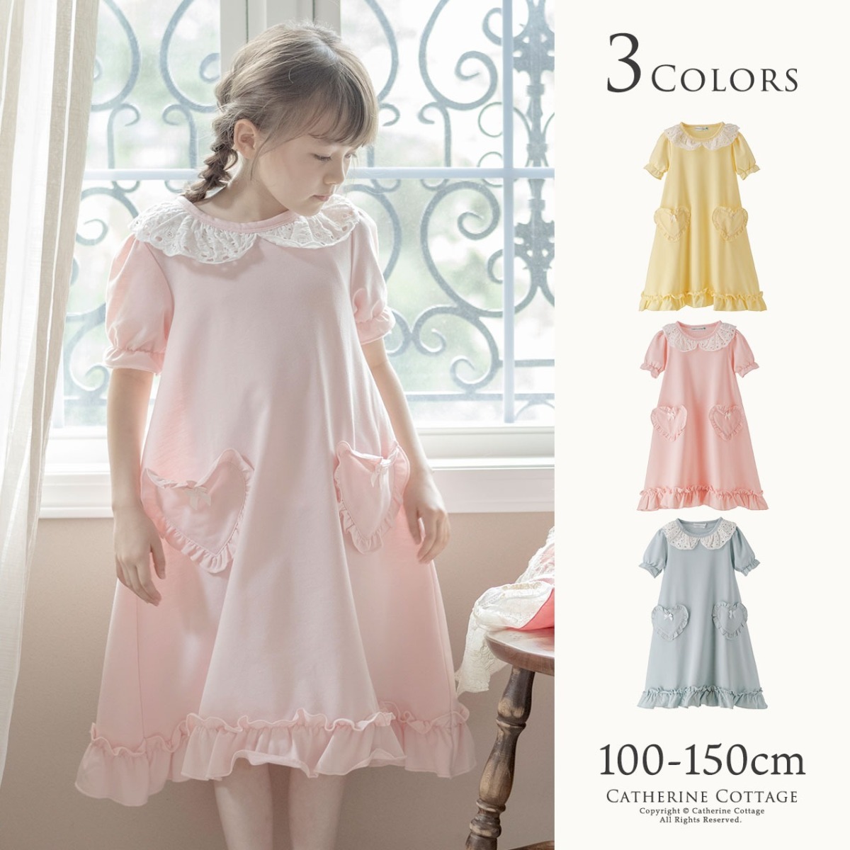 ▲パフスリーブに、レース、フリル、リボン、ハート・・女の子の気分があがるデザインポイントがいっぱい!