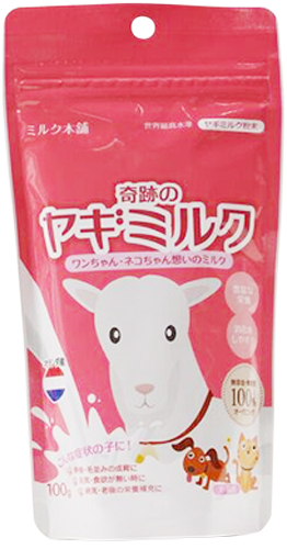 山羊乳から脂肪を抜いた、ペット用の粉末ミルクです。