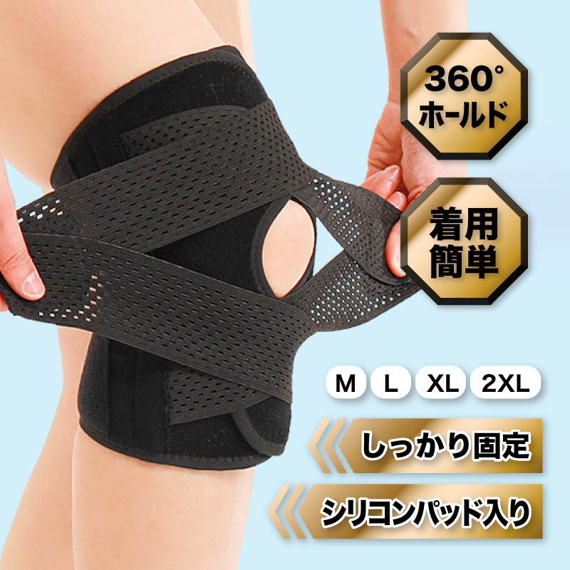 クロスベルト構造とシリコンパッドが膝を360°しっかりホールド