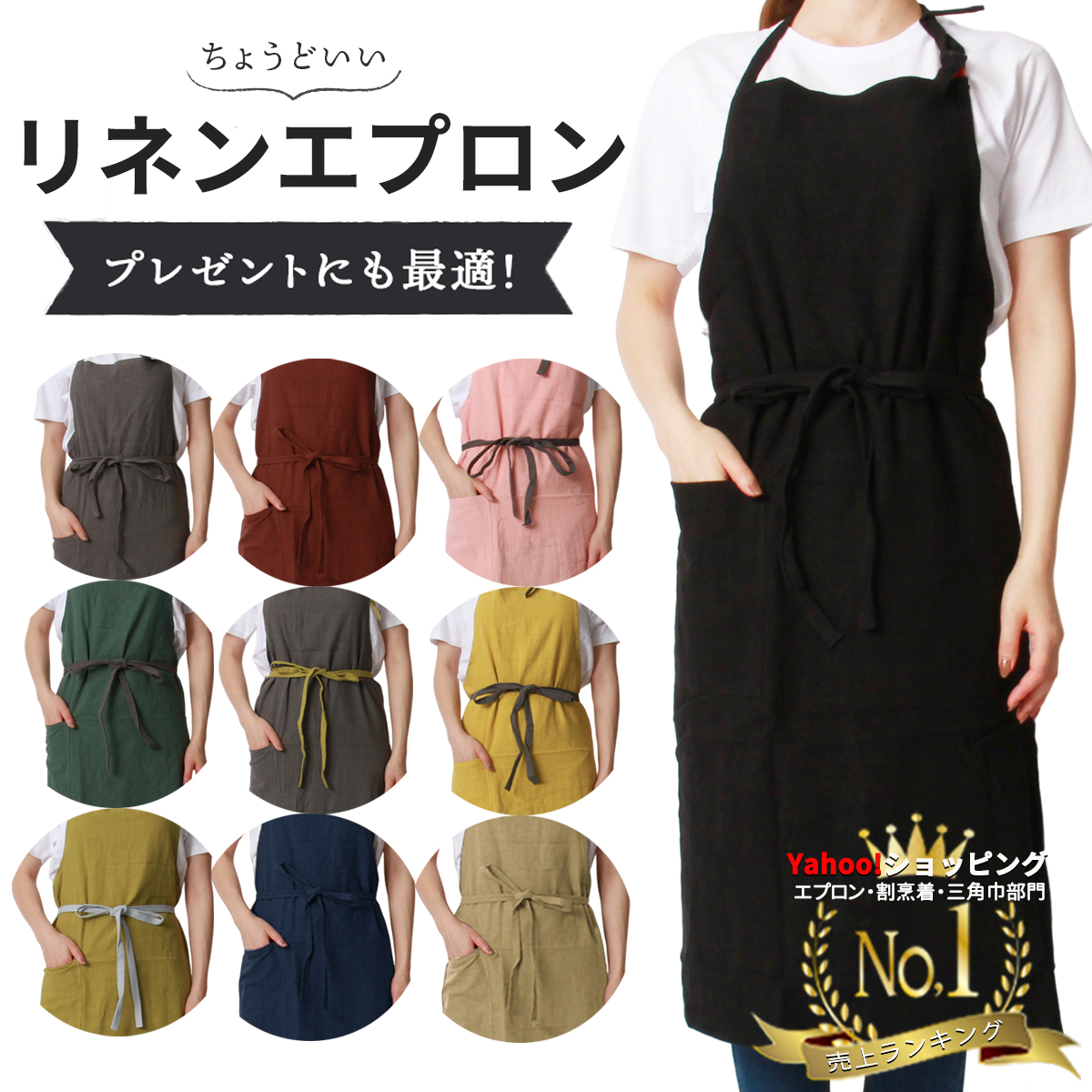 リネン エプロン おしゃれ ワンピース レディース メンズ 北欧 保育士 カフェ 安い ロング丈 かわいい ナチュラル