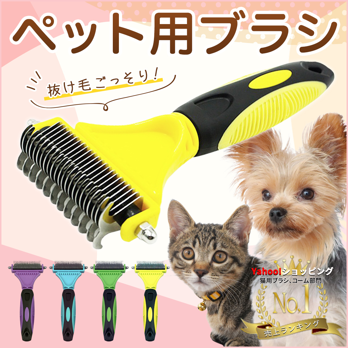 ペット ブラシ 両面 ペットブラシ 犬 猫 うさぎ 抜け毛 抜け毛除去用品 抜け毛取り 短毛 長毛 グルーミング