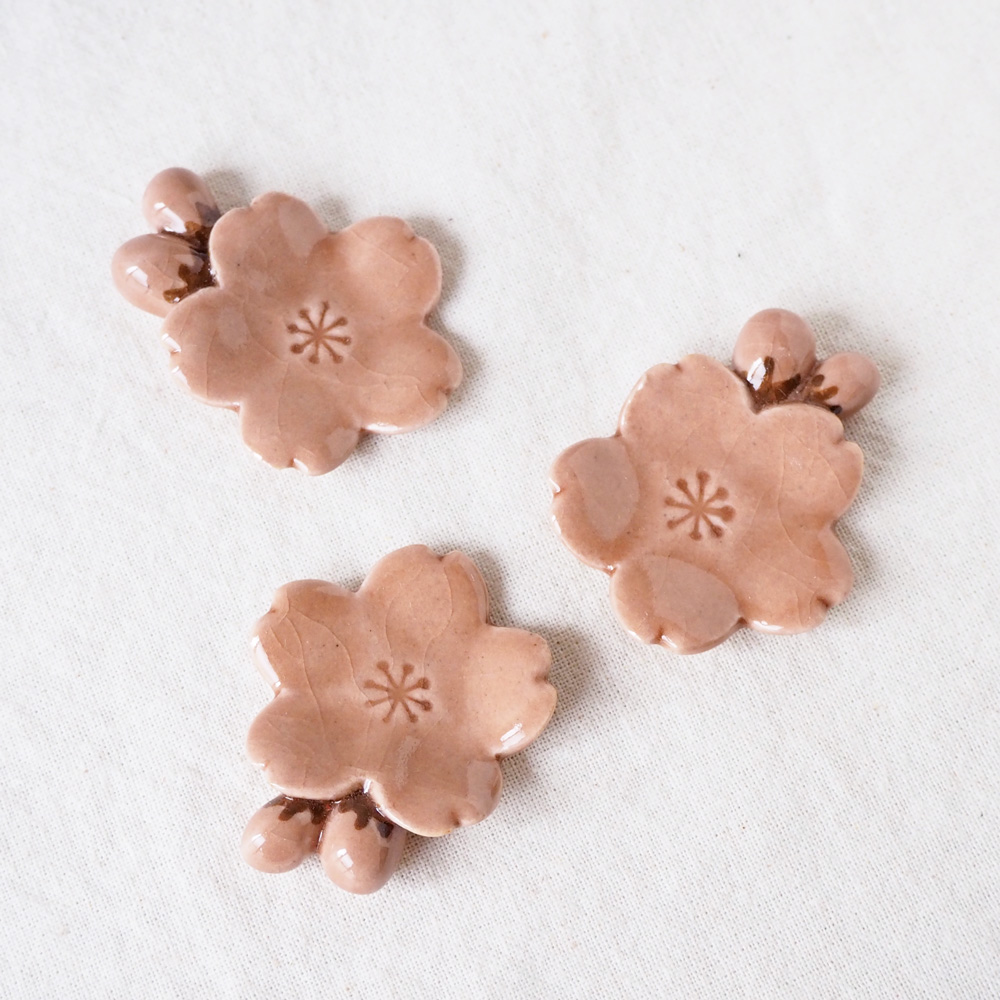 ◆かわいい桜の花とつぼみの箸置き 陶器 ピンク