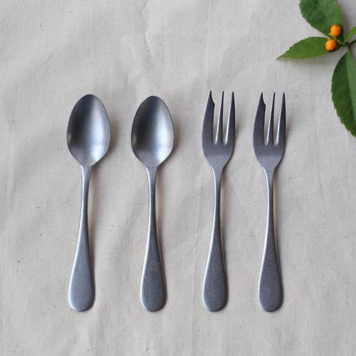 ステンレス スモーキーカラー マット グレイ ティースプーン135mm ケーキフォーク140mm 日本製 ダメージ加工 おしゃれ