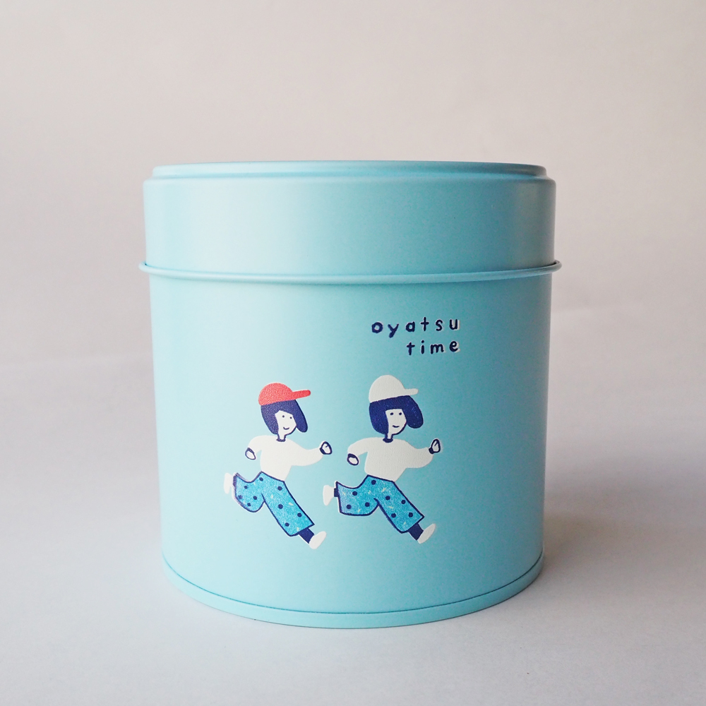 かわいい缶 茶筒 お茶缶 水色 コルン缶 内蓋付 おかっぱ φ8.2cm×h8.2cm オリジナル柄 かわいい 日本製