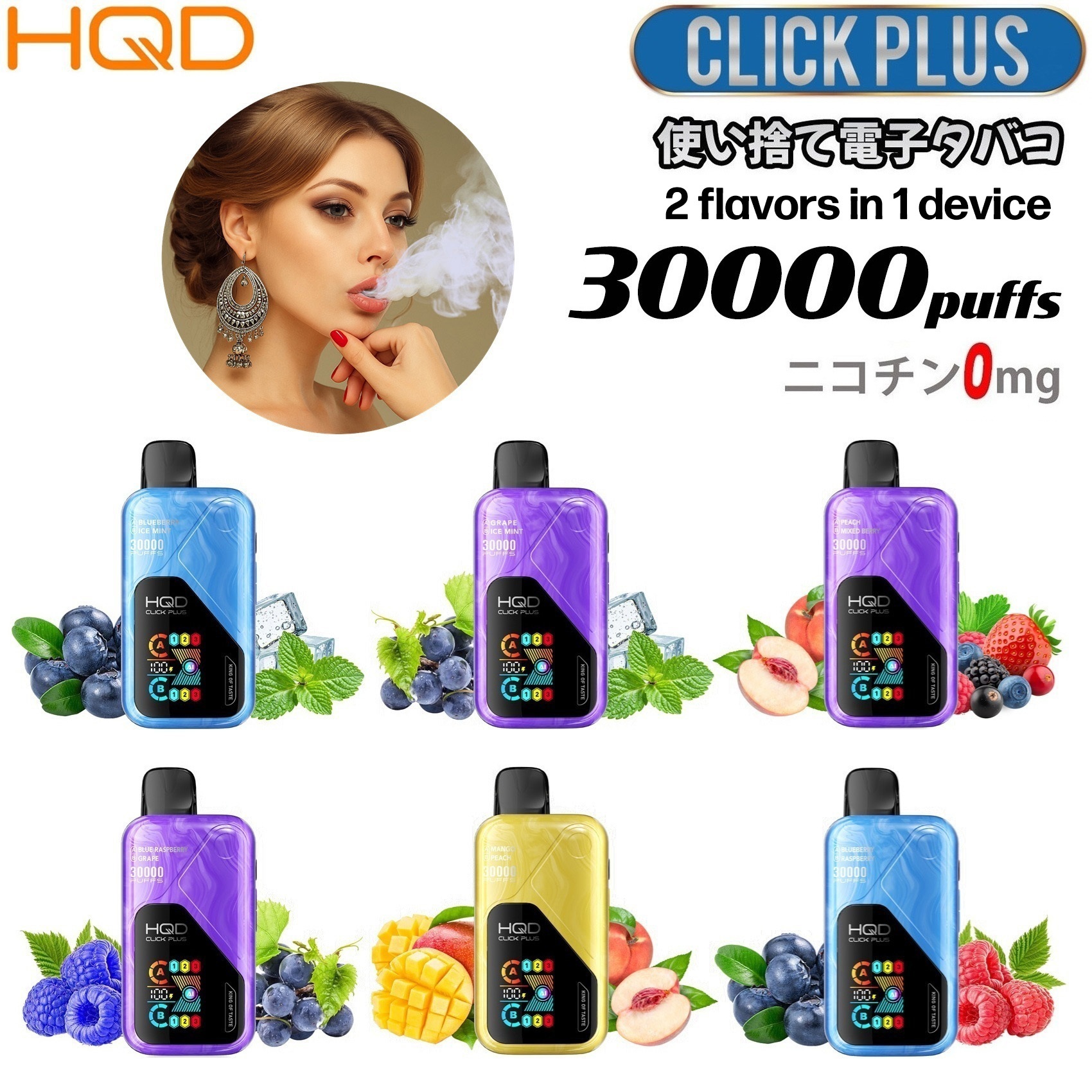 電子タバコ シーシャ 30000回吸引 ニコチン0 電子VAPE 水蒸気タバコ 持ち運びシーシャ 禁煙パイポ 使い捨て VAPE ベイプ リキッド 禁煙グッズ HQD CLICK PLUS