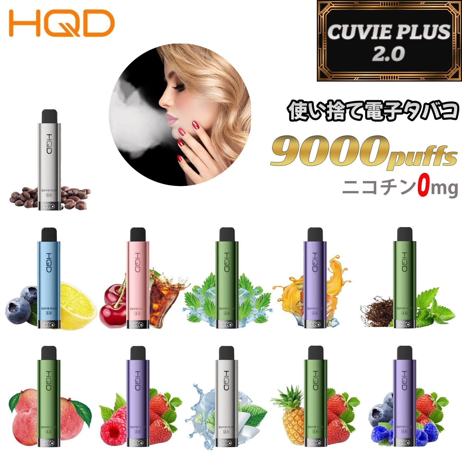 電子タバコ シーシャ 9000回吸引 ニコチン0 電子VAPE 水蒸気タバコ 持ち運びシーシャ 禁煙パイポ 使い捨て VAPE ベイプ リキッド 禁煙グッズ HQD CUVIE PLUS2.0
