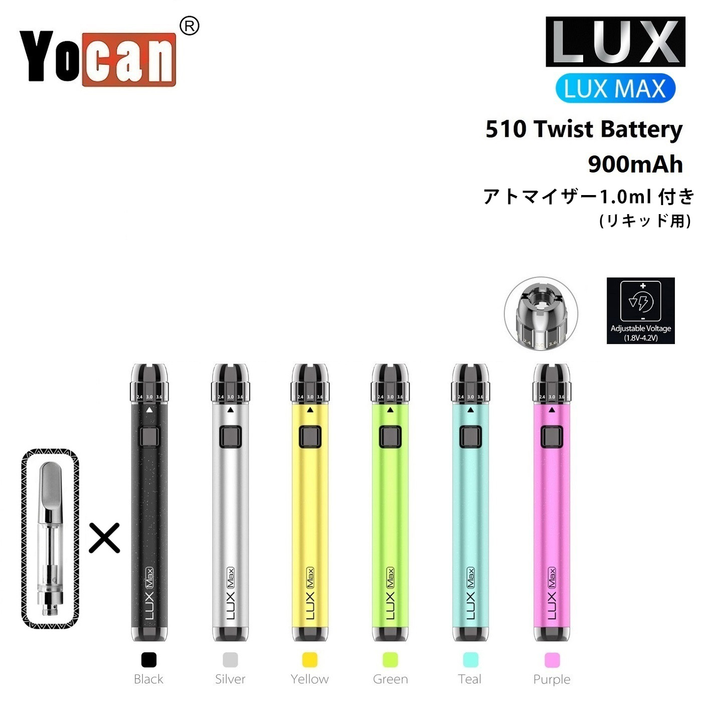 ヴェポライザー Yocan LUX MAX 510 Twist Battery 900mAh 【アトマイザー付き リキッド用】 CBD VAPE ヨーキャン ツイスト 大容量バッテリー