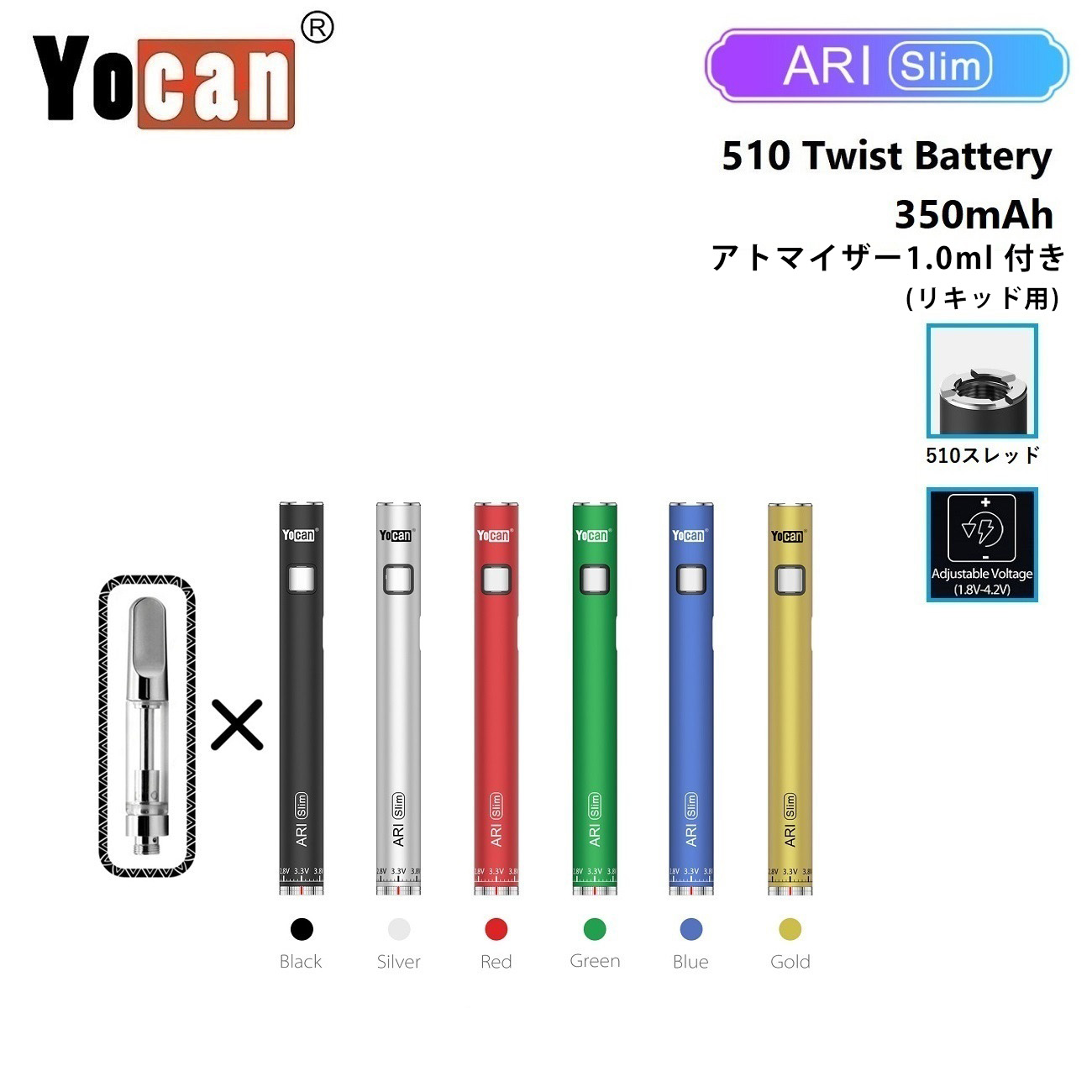 ヴェポライザー Yocan ARI Plus 510 Twist Battery 900mAh CBD CBN VAPE 【アトマイザー付き リキッド用】 ヨーキャン アリ ツイスト バッテリー ペン型