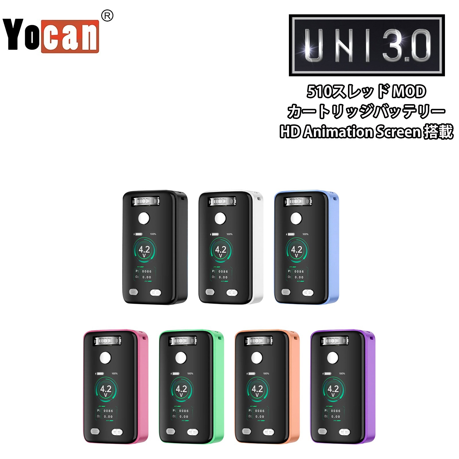 Yocan「UNIシリーズ」最新デバイス 『UNI 3.0』HDアニメーションスクリーン搭載 510 MOD カートリッジバッテリー
